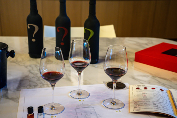 Pour terminer cette expérience, dégustez à l'aveugle les 3 vins de nos châteaux : Château Balestard La Tonnelle, Château Cap de Mourlin and Château Roudier.
